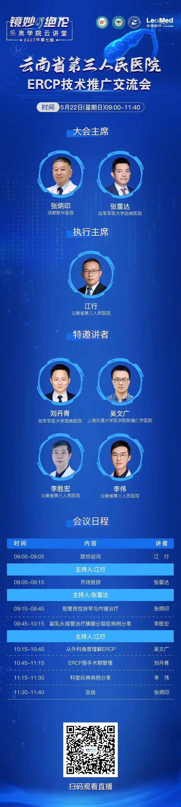 「直播預(yù)告」|【5月22日 09:00】樂奧學(xué)院云講堂2022年第七期 云南省第三人民醫(yī)院ERCP技術(shù)推廣交流會(huì)